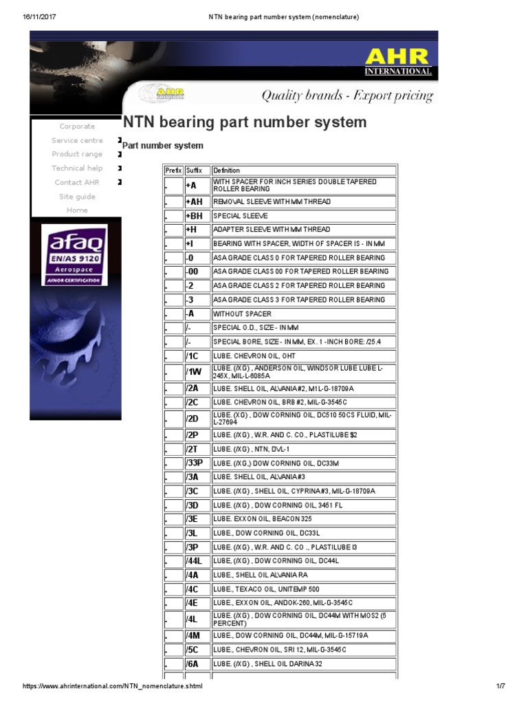 NTN Bearing Part Number System (Nomenclature) Bearing (Mechanical